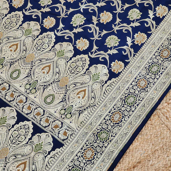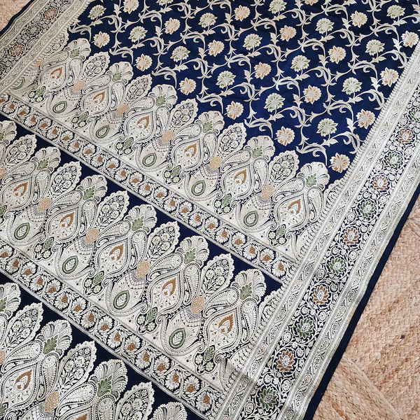 Navy Blue Pure Katan Silk Banarasi Handloom Saree